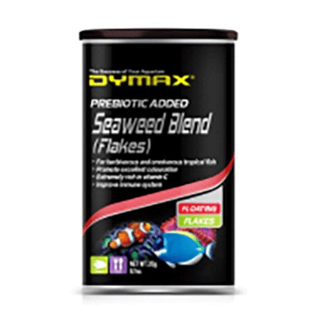 Dymax Seaweed Blend is an all natural and nutritious formula which is rich in vitamin C and enhanced with natural garlic extract to increase acceptance on wild caught or finicky eaters and helps promote fish health as garlic is a natural ingredient for parasite prevention. This product is an optimal food source for marine herbivores such as Wrasses; Damsels; Tangs; Angels and other freshwater herbivorous fish; which is 100% digestible. Promotes excellence colouration. Improves immune system. Feeding Instructions: Feed 2 to 3 times daily the amount of food the fish will consume within 5 minutes. Avoid over feeding and always remove left over food after the feeding period. 20g Can.