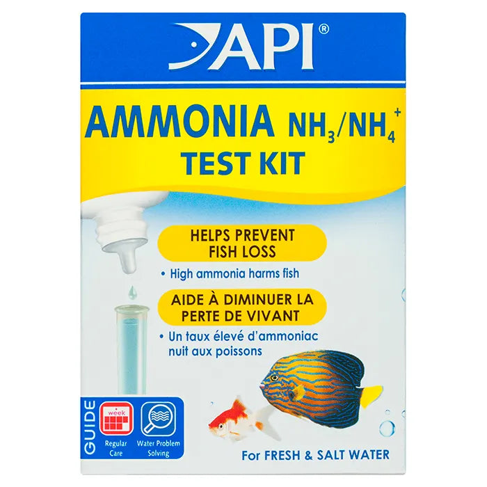 The API AMMONIA TEST KIT for freshwater and saltwater squariums contains two liquid dropper bottles, easy-to-read instructions with information on how to test and correct unsafe water conditions, two color charts and a test tube with snap-tight cap. This test kit reads ammonia levels from 0 to 8 ppm. Use the API API AMMONIA TEST KIT several times a week for 4-6 weeks when you start a new aquarium, and then use it weekly for monitoring or when problems occur. This aquarium test kit is for use in freshwater and saltwater aquariums. With API aquarium products, it’s easy to keep a beautiful saltwater, freshwater or reef aquarium. For almost 60 years API has developed premium solutions with proven and effective results for your family and ours. API offers a range of testing kits, water conditioners, and nutritionally superior food, because we’re dedicated to making a better underwater world. They work to provide a safe, hospitable environment for fish such as tropical community fish, cichlids, goldfish and more. At API, we understand the rewards and relaxation of fishkeeping because we have a passion for fish too.