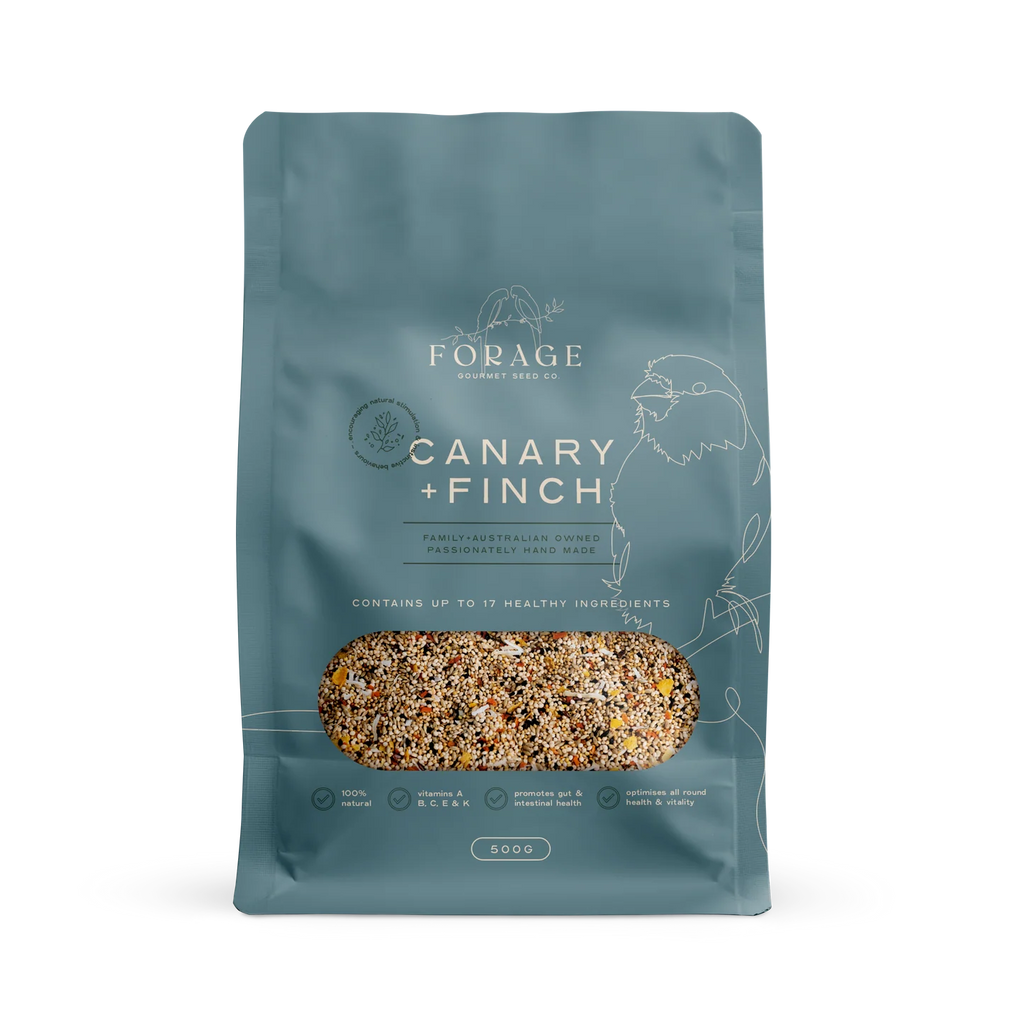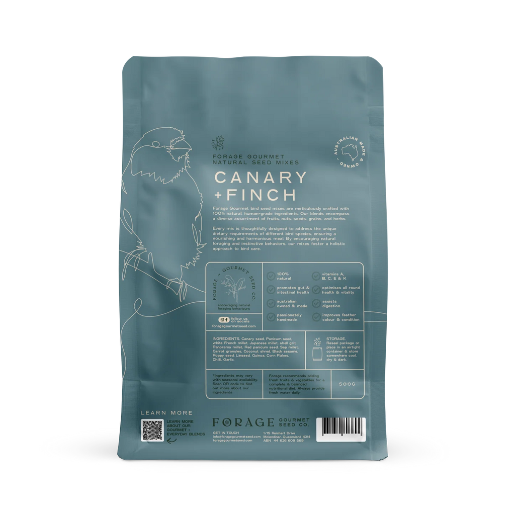 Ingredients in Forage Finch and Canary blend can assist in worm prevention, promote gut health and boost immunity. Vitamins A-K and omega-rich Flaxseed improve feathers while Chilli can help warn off worms and promote general well-being.