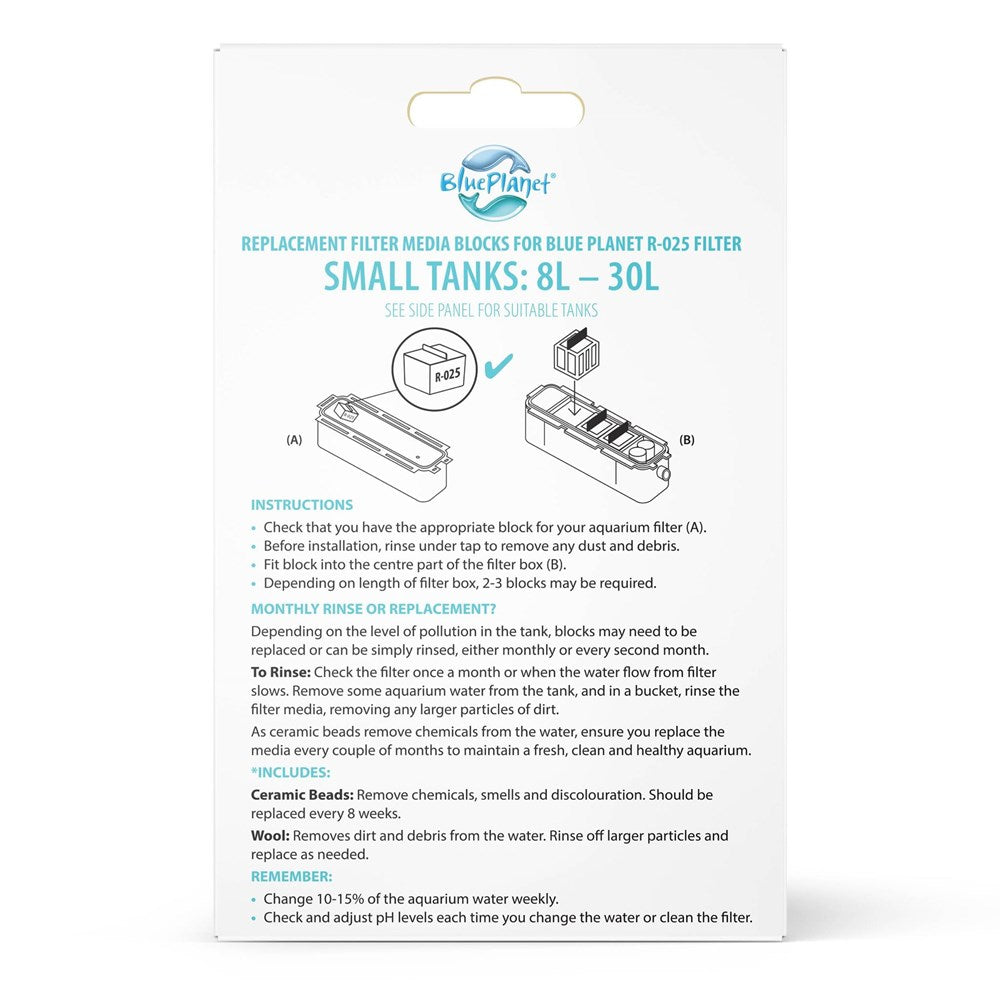 Replacement filter media blocks. Besides the usual wool and activated carbon, these handy media blocks also include Zeolite which removes ammonia build ups from uneaten food & fish waste, keeping the water clearer for longer.
