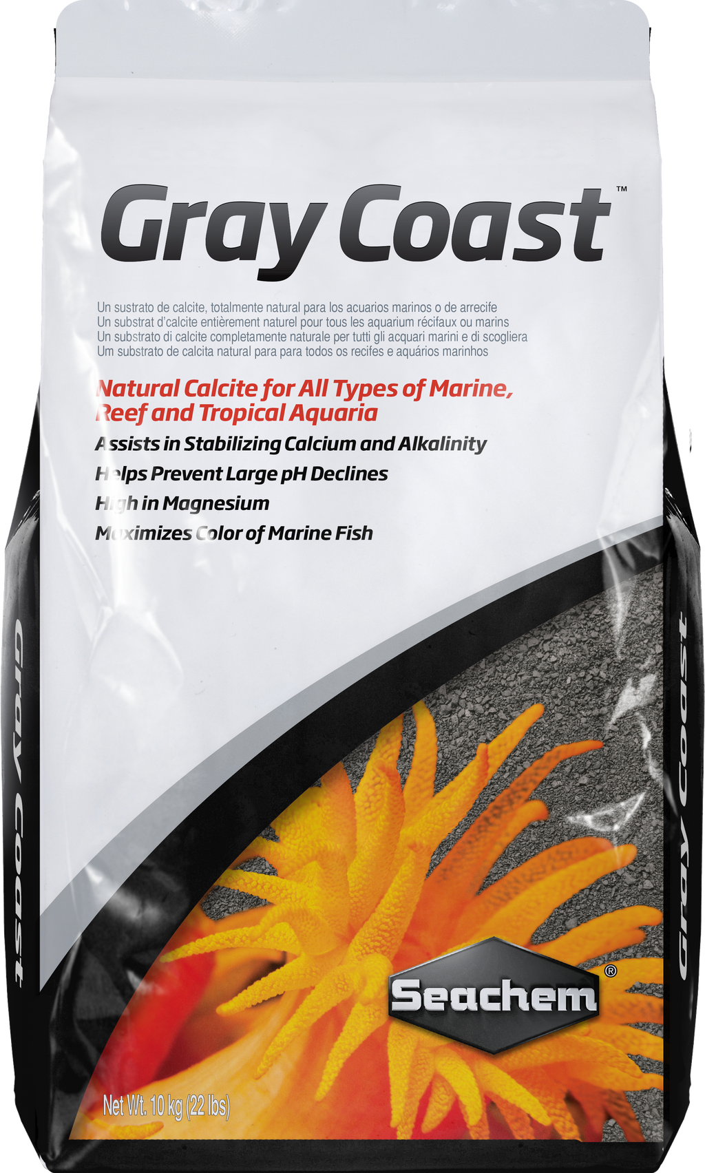Gray Coast™ Calcite is an all natural calcite substrate for all types of marine, reef and tropical aquaria. Its chemical composition will assist in stabilizing calcium and alkalinity while preventing large pH declines. Simply rinse before use to remove any residual dust. Unlike competing “wet” gravels, Gray Coast™ is sold dry: this bag contains 35% more gravel than a bag of wet gravel of equal weight. These “wet” gravels are marketed to give one the impression that they contain living, microscopic animals when in fact they only contain common bacteria. Dry or wet, there are bacteria on every substrate. If one is concerned with shortening the aquarium cycle time for a new system, then the use of a product designed for that particular purpose would be more appropriate (such as Seachem’s Stability).